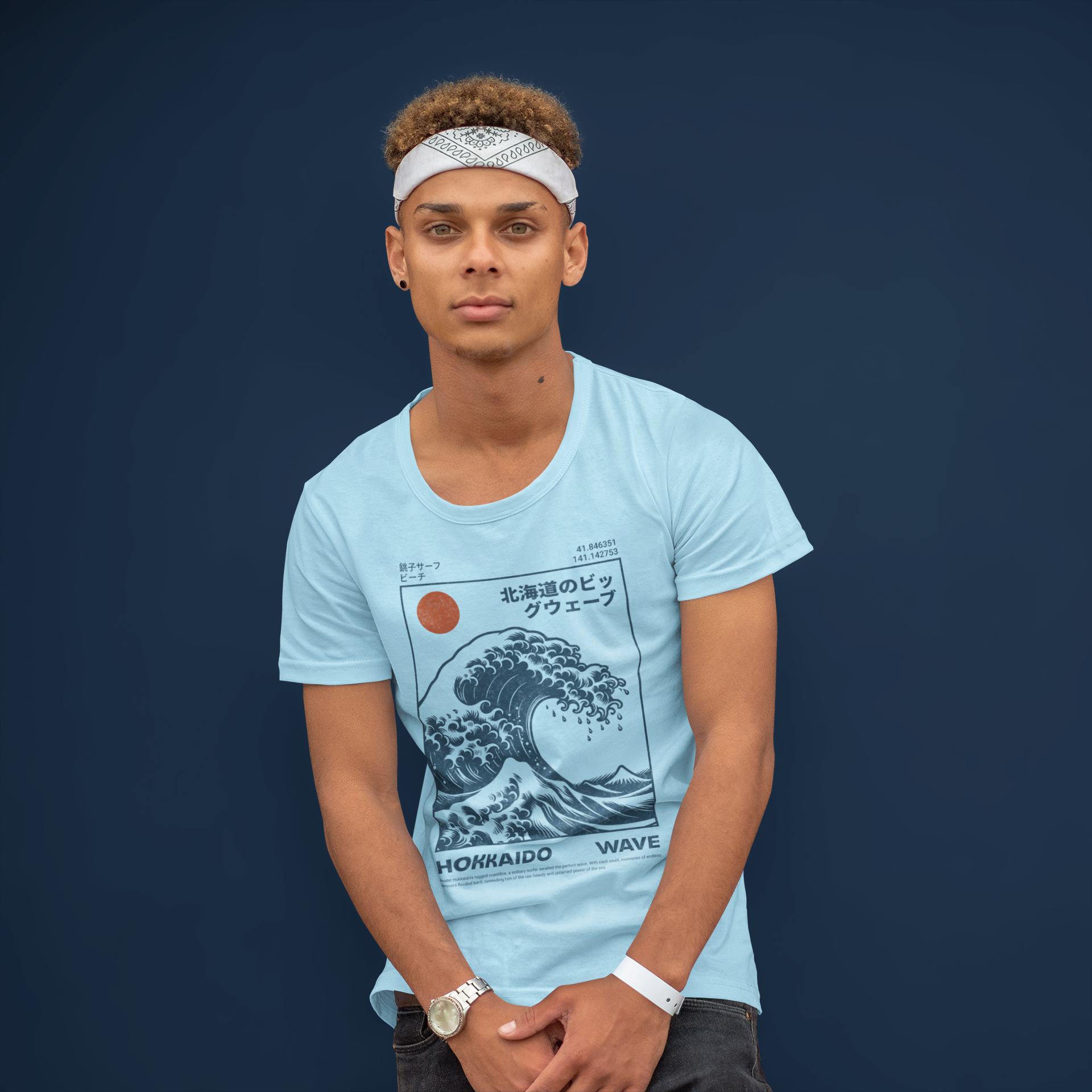 Ride the untamed fury of Hokkaido waves on this crew neck tee, with dynamic graphics capturing icy ocean power.